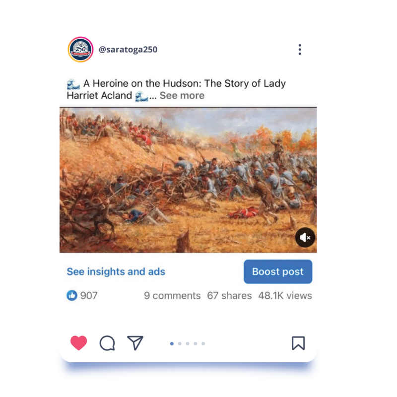 Since September 2024, Happy Brands Co has partnered with Saratoga 250 to elevate their digital presence through social media, content creation, and advertising campaigns. Our team grew their social following by over 100% in just one year, while engagement skyrocketed from 50,900 to more than 200,000 interactions. By creating dynamic reels, interactive content, and historic storytelling, we’ve helped transform Saratoga 250 into a leading heritage tourism brand that connects the past with today’s audience.